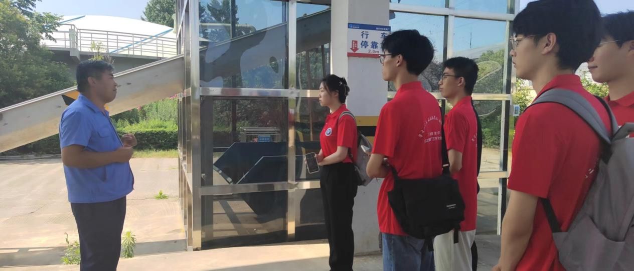 出征仪式结束后,实践团队与洛阳市生态环境综合行政执法支队洛龙大队共同进入到北控(洛阳)水务发展有限公司新区污水处理厂开展本次实践活动。进入厂区后,厂区负责人首先进行了入厂安全教育,讲解安全知识和注意事项,强化安全意识,确保整个参观实习过程安全有序。之后他详细介绍了新区污水处理厂的日处理规模、生产经营情况和处理后的中水使用情况。
