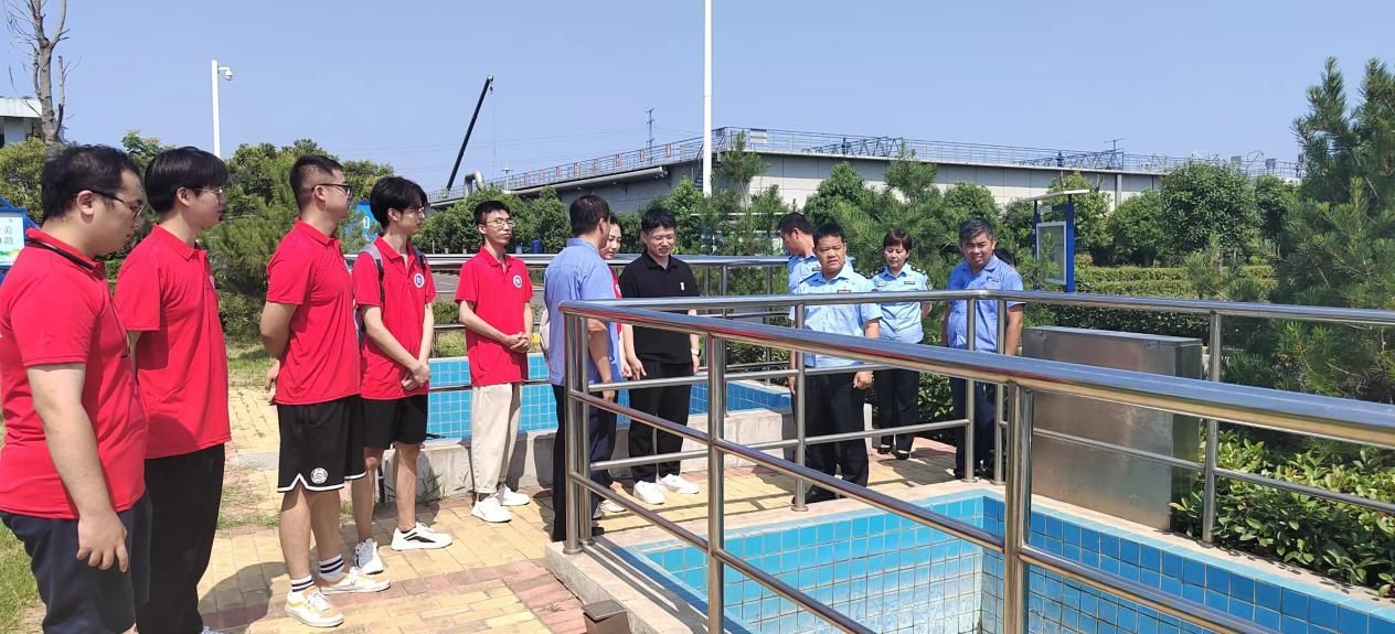 负责人以及执法大队刘建勇队长带领师生们依次参观粗格栅及进水泵房、细格栅曝气沉砂池、鼓风机房、生物池、高效沉淀池、接触消毒池、污泥脱水车间和出水总排口等污水处理设备及工艺流程,并就污水处理原理、活性污泥处理法、设备自动化应用等专业技能进行了讲解。他强调,现厂区污水处理遵循黄河流域水质标准,出水达国家一级A标准。炎炎烈日挡不住同学们学习的热情,现场参观过程整齐有序,同学们还不时地提问。负责人以及执法大队刘队长对学生们提出的污水现状分析、常见污水处理工艺比较、污泥处置再利用等问题一一进行了解答。