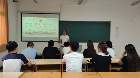化工与制药学院研究生第一党支部召开党员大会,党支部书记孙亚飞以党史学习贵在“真有所获”为主题给支部全体党员上了一堂生动、深刻的党课。