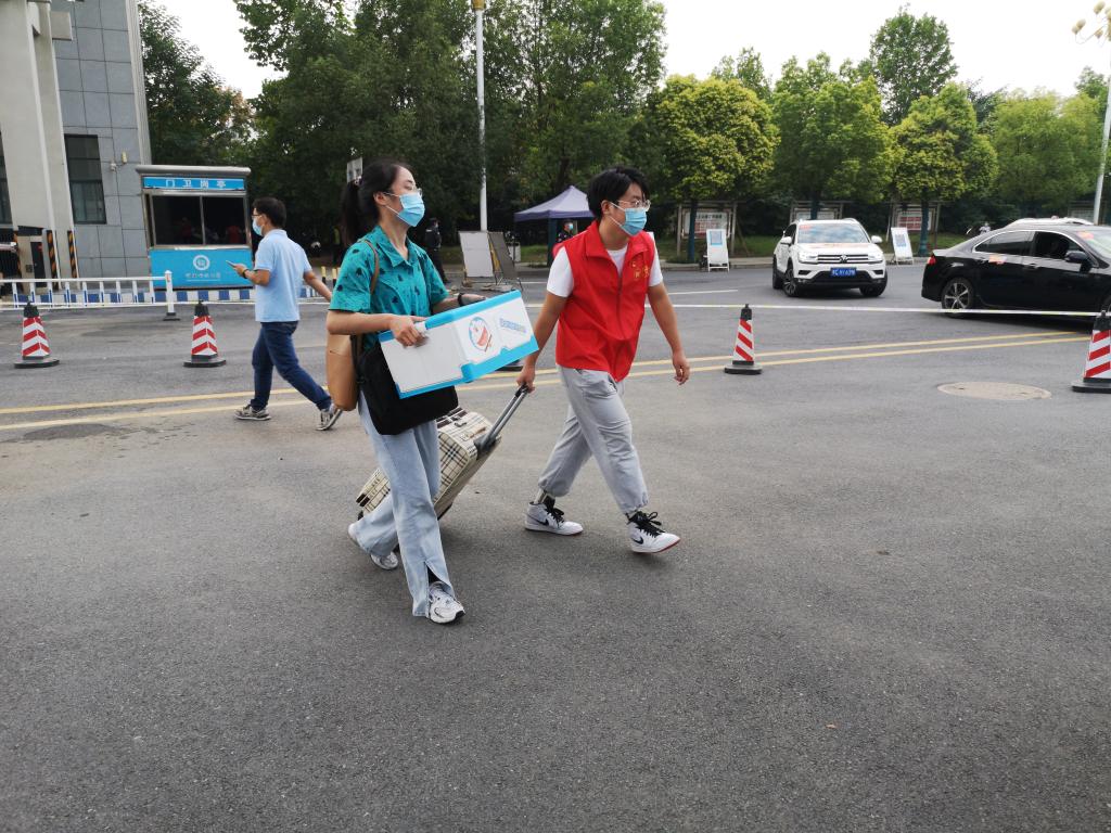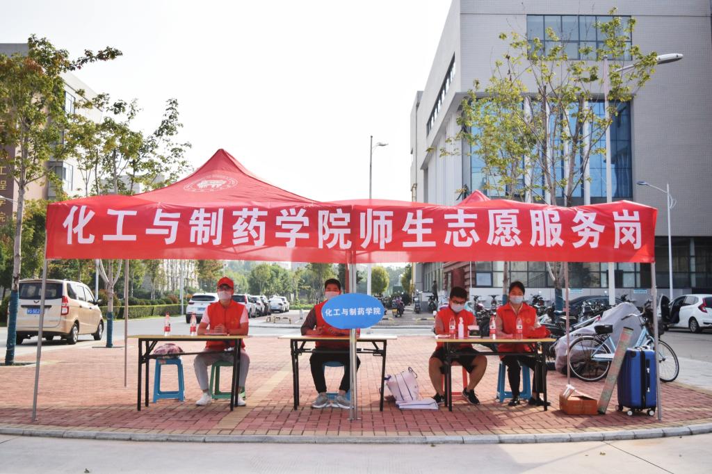 金秋送爽,丹桂飘香,又是一年开学季。为确保疫情防控期间同学们顺利开学,有序返校,9月23日,根据学校的统筹安排,在化工与制药学院党委书记于淑敏、院长马军营、副院长李军波的带领下,我院20余名研究生党员志愿者分别于学校北大门服务点、门口乘车服务站、乾园服务点进行迎生返校防疫志愿服务活动。