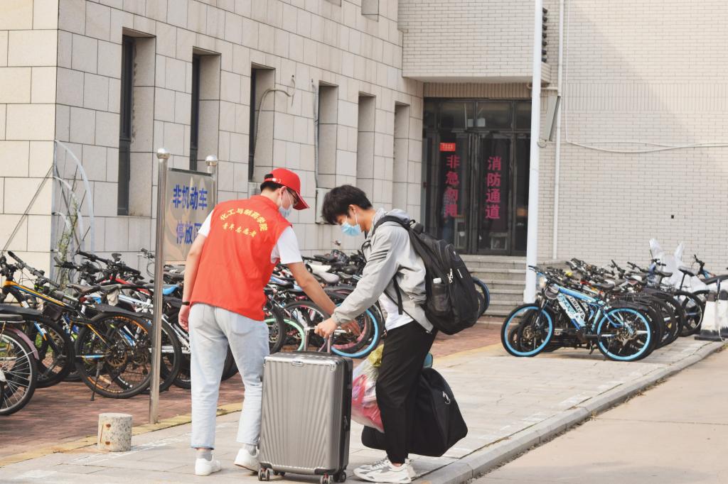 在志愿服务活动现场,研究生党员们以身作则、率先行动,对来校学生进行身份核验、核酸证明检查,以及行程码的查看,积极做好行李搬运、校内指引等服务,用实际行动充分发挥党员的模范带头作用,组成了化工与制药学院迎生返校现场的一道靓丽风景线。