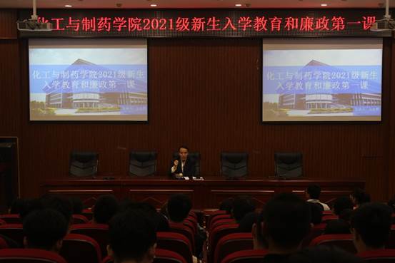 2021年10月13日晚上6:30,化工与制药学院在工科五112顺利举办了2021级新生入学教育和廉政第一课教育。此次教育由院党委副书记马东辉老师主讲,2021级全体新生参加了此次教育。