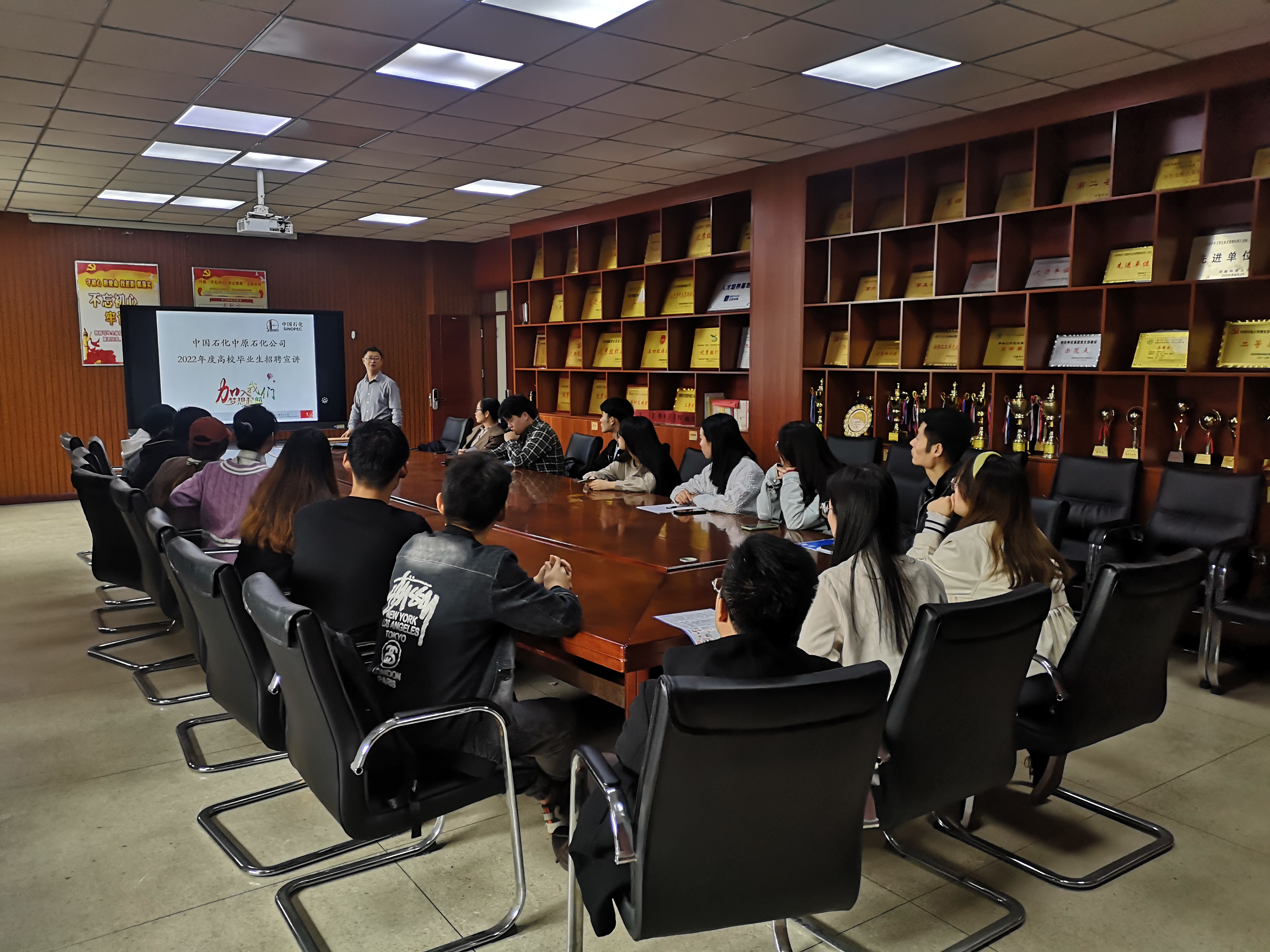 2021年10月14日下午13:00,化工与制药学院在工科5-227会议室举办中国石化中原石油化工有限责任公司专场宣讲会,2022届本科和研究生毕业生参加了此次宣讲会。