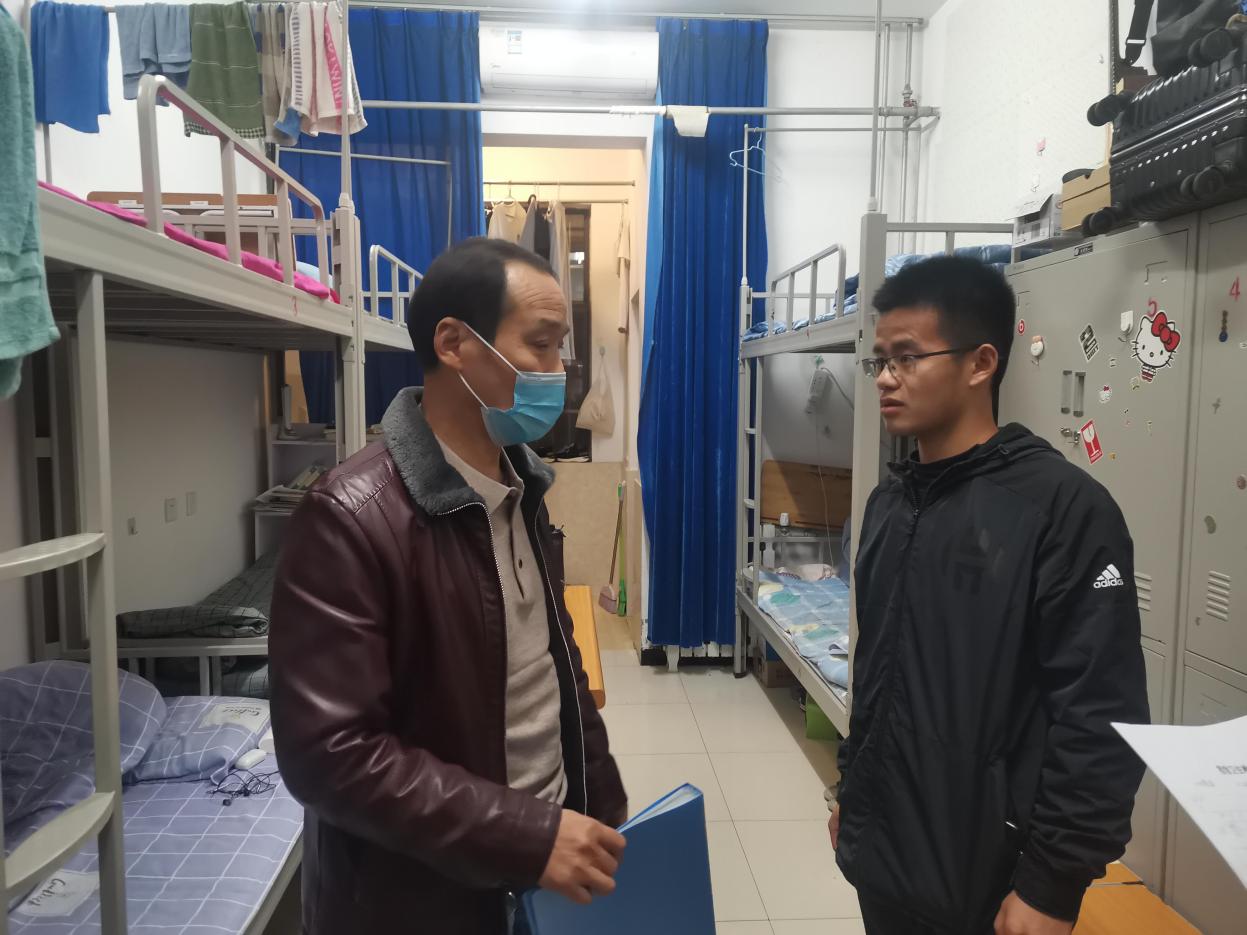 本次检查内容包括宿舍卫生和宿舍用电安全。本次检查过程中四位老师共同强调了学生宿舍内不允许使用大功率电器这一问题,并指出干净整洁的宿舍环境对学生的学习、生活和身体健康十分重要。同时,老师们也对寝室同学的学习和生活状态进行了解,并叮嘱同学们在接下来的时间里认真学习,积极向上。总体来讲,宿舍环境较好,部分宿舍内部布置很有创意。