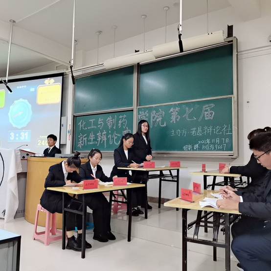 11月7日晚上7点,化工与制药学院若悬辩论社在公教3-107教室举办了2021年新生辩论赛。化工与制药学院团委学生会主席团成员王丽梅、马学胜、科普与环保协会第一负责人闫少冲、若悬辩论社第一负责人吴锐、若悬辩论社第二负责人王娟以及各班学生代表参加了此次活动。