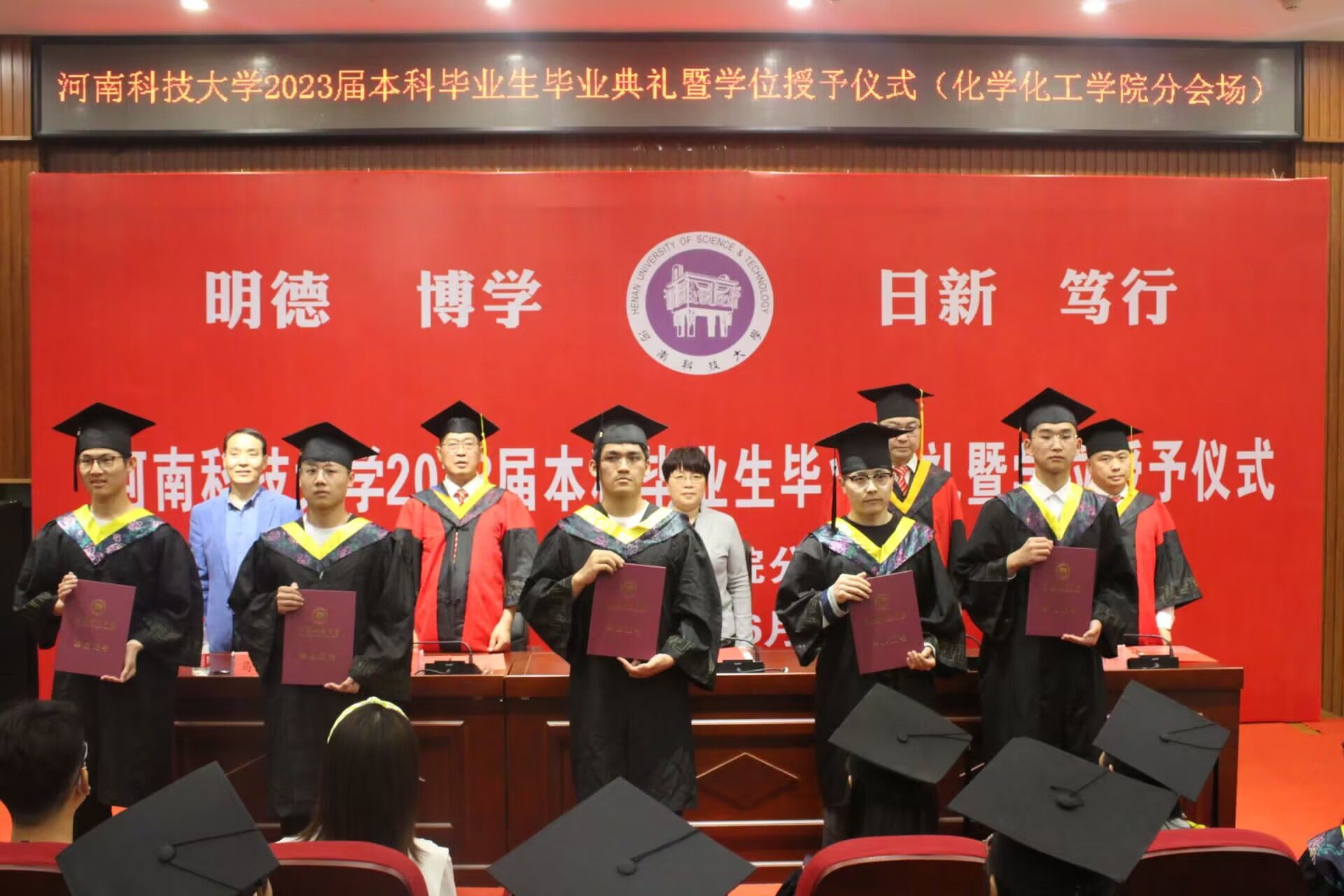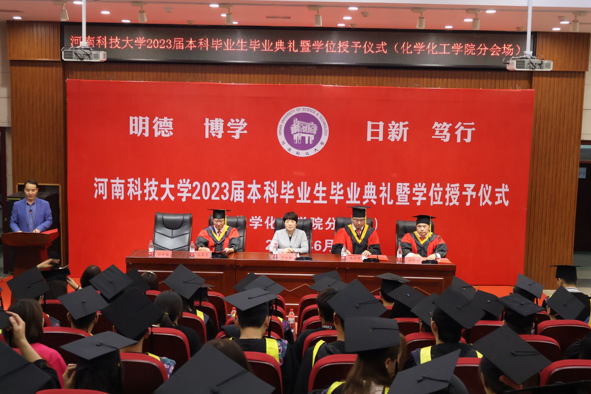 毕业生资格审查及学位授予情况。接着,学院领导班子为毕业生代表颁发毕业证,院长马军营、副院长魏学锋、副院长卢伟伟为获得学士学位的毕业生正冠拨苏,授予学位,并合影留念。随后,毕业生代表杨雅男和孔维臻发表了毕业感言,表达了对母老师、母校的感激以及对未来的美好展望。然后,教师代表化工系副主任李欣老师和环境工程系副主任张瑞昌老师发言,对全体毕业生表达了殷切希望和美好祝愿。最后,院长马军营教授对2019级毕业生取得的成绩给予肯定,并向同学们作出嘱托:希望毕业生们把个人理想融入国家和民族的事业中,肩负起时代赋予的责任,在激情奋斗中,绽放青春的光彩。最后,在庄严的校歌中,ACG导航