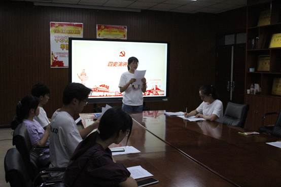 为了庆祝建党100周年,弘扬爱党爱国、知史懂史的精神,化工与制药学院于6月26日晚7点在工科5-227会议室举行了“讲个故事给党听”——学“四史”征文演讲活动。院团委副书记成一林老师出席了此次活动,党员代表和入党积极分子代表参加了此次活动。